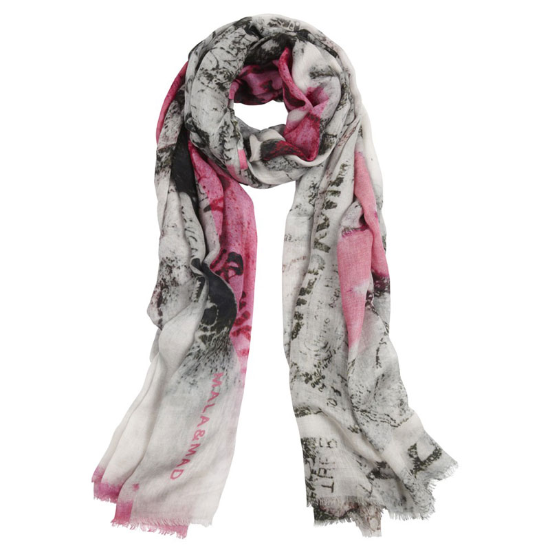 Positive Energie spendet der Scarf mit dem passenden Namen „Joy“! Rosa, Schwarz und Grau mit verwaschenen Vintage-Effekten und Peace-Prints …